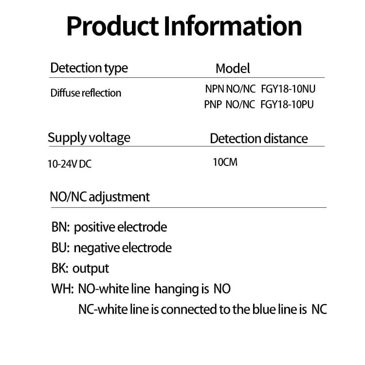 FGY18-10NU センサーは検出能力に優れており、さまざまな用途に合わせて調整された優れた検出距離を提供します。オートメーション システム、機械制御、その他の産業環境で正確な測定が必要な場合でも、このセンサーは信頼性が高く正確な結果を提供します。