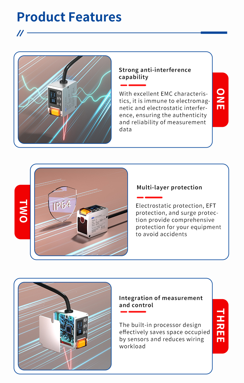 FLRS シリーズ レーザー距離センサーの紹介は、正確で信頼性の高い長距離測定のために設計された高性能ソリューションです。バックグラウンド抑制を備えた高度な飛行時間 (TOF) テクノロジーを利用したこのセンサーは、最大 5 m または 10 m の柔軟な検出範囲を提供し、さまざまな産業用途に適しています。優れた耐干渉機能と優れた EMC 特性を備えた設計で、電磁障害や静電気障害に効果的に抵抗し、困難な環境でも一貫性のある信頼できるデータを保証します。