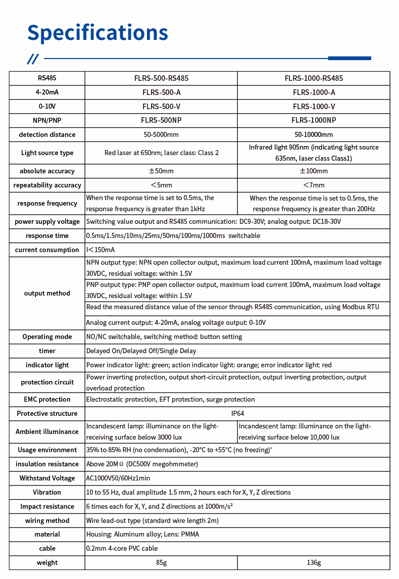 FLRS シリーズ レーザー距離センサー: 精密測定、強化されたパフォーマンス