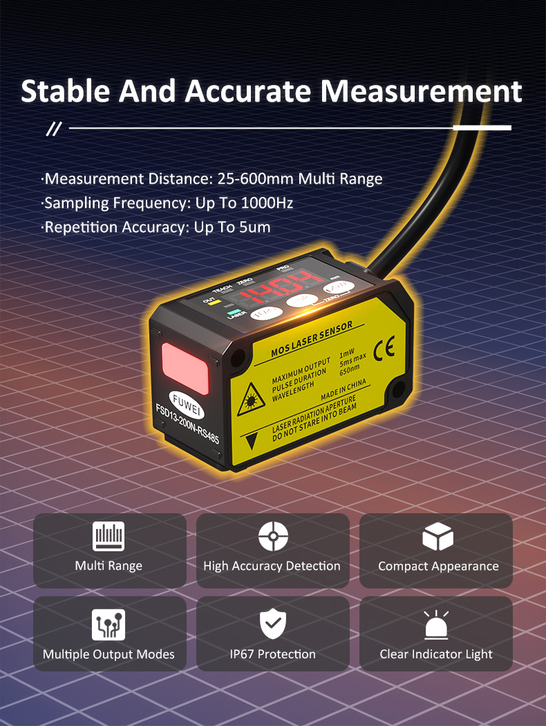 産業用自動化の分野では、高精度、高信頼性の変位測定は、生産効率と製品の品質の中心的な保証でした。 Fuwei Electronicsの新しく発売されましたCMOSレーザー変位センサーFSD13シリーズまた、その画期的な技術設計と厳しい産業用グレードの基準により、機械的製造、電子パッケージング、食品包装などの産業に「ミリメートルレベルの精度とマイクロメーターレベルの安定性」インテリジェント検出ソリューションを提供し、複雑な動作条件で測定基準を再定義します。