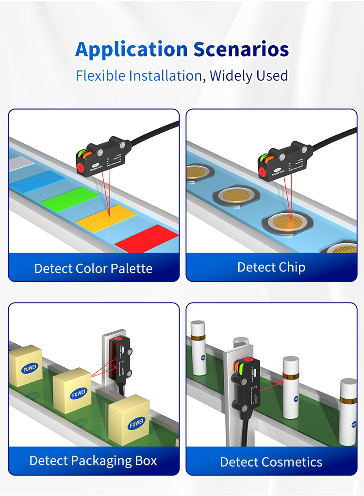 この設計は、頻繁な検出オブジェクトの変更を必要とする生産ラインに特に適しています。直感的なノブ調整により、オブジェクトを検出するための最適な位置を迅速に識別し、検出精度が最高レベルに達するようにします。このカラープレート検出センサーのユーザーフレンドリーな設計は、ユーザーのニーズに対するFuwei Electronicsの深い理解と技術革新へのコミットメントを完全に示しています。