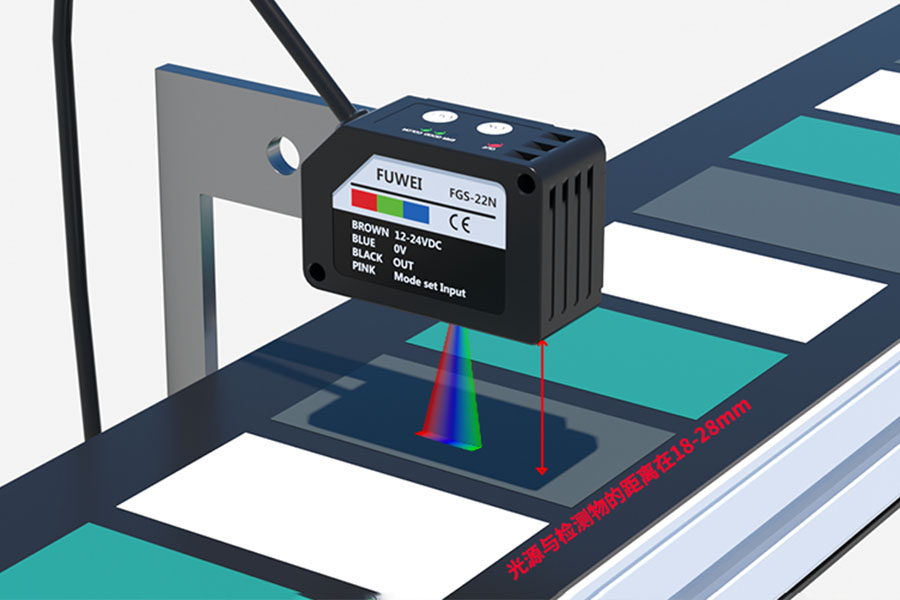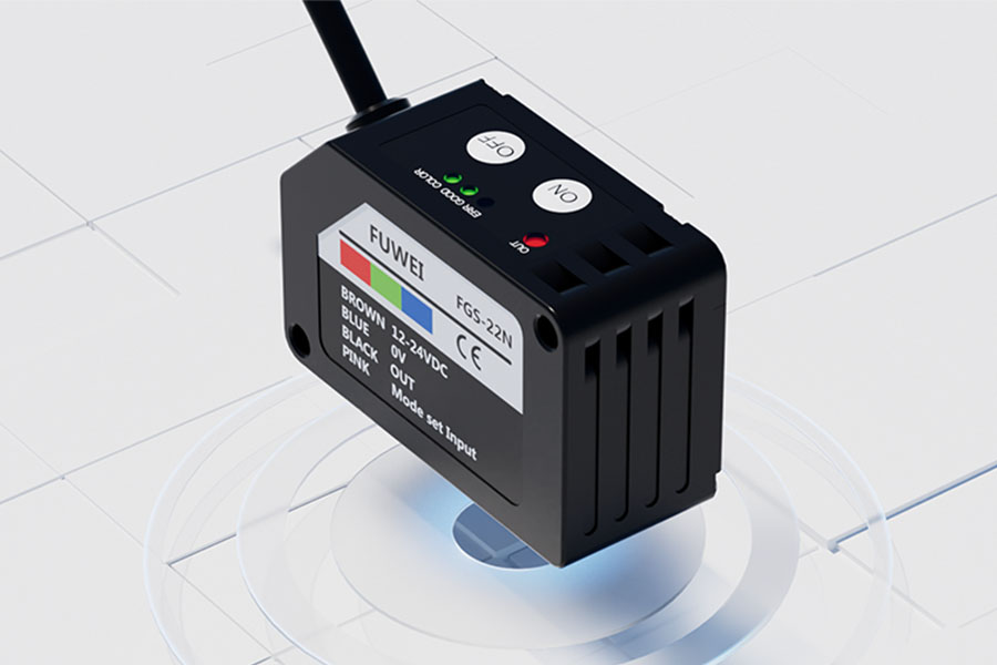 Fuwei Electronics の FGS-22N シリーズ カラー マーク センサーは、独立した赤、緑、青の LED 光源を内蔵しています。対象物の表面特性に応じて最適なLEDの組み合わせを自動選択します。