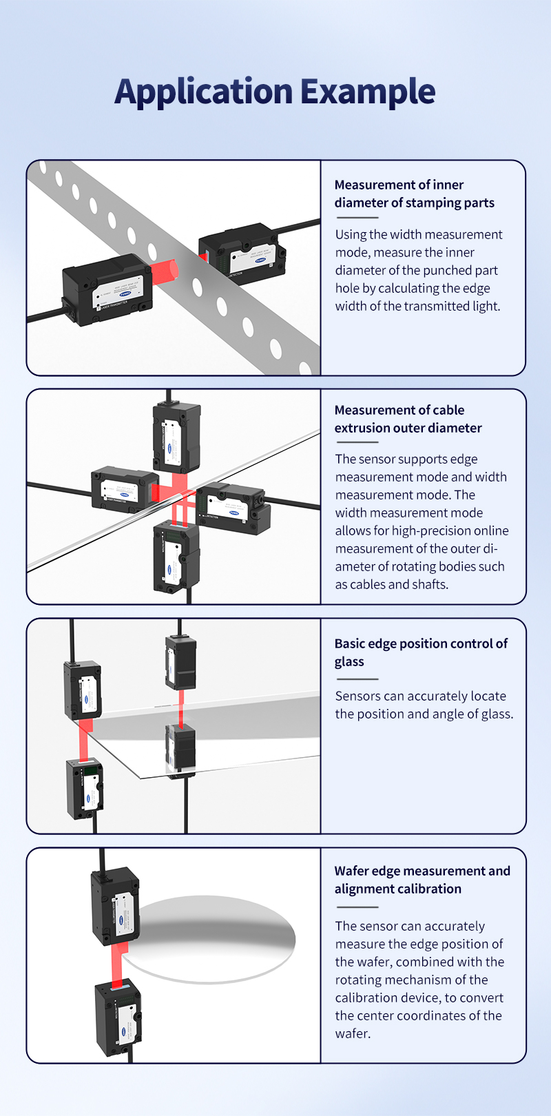 ウェーハエッジの位置決めと巻線デスキュー:半導体製造のために、センサーの小型化された設計は狭いスペースに埋め込むことができ、14*12mmスポットはウェーハの輪郭を正確に識別します。