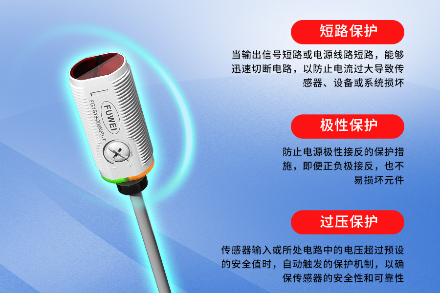 センサーの優れた性能は、包括的な三重保護システムによって初めて実証されます。出力信号の短絡または電力線の短絡が発生した場合、デバイスは数ミリ秒以内に回路を切断し、システムへの電流過負荷による損傷を効果的に防止します。独自の極性保護設計により、オペレーターが誤って電源の極性を逆にしても、センサーのコアコンポーネントは損傷を受けません。過電圧保護メカニズムは、入力電圧が事前に設定された安全限界を超えると自動的に作動し、複雑な産業環境での安定した動作のための包括的な安全装置を提供します。